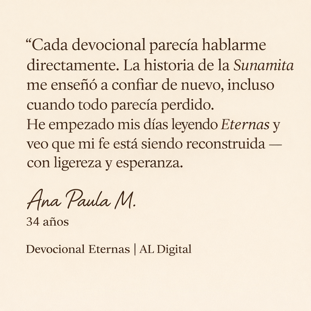 Durante 30 días, el Devocional Eternas te guiará a un encuentro profundo con Dios y con el propósito que Él plantó en ti.
