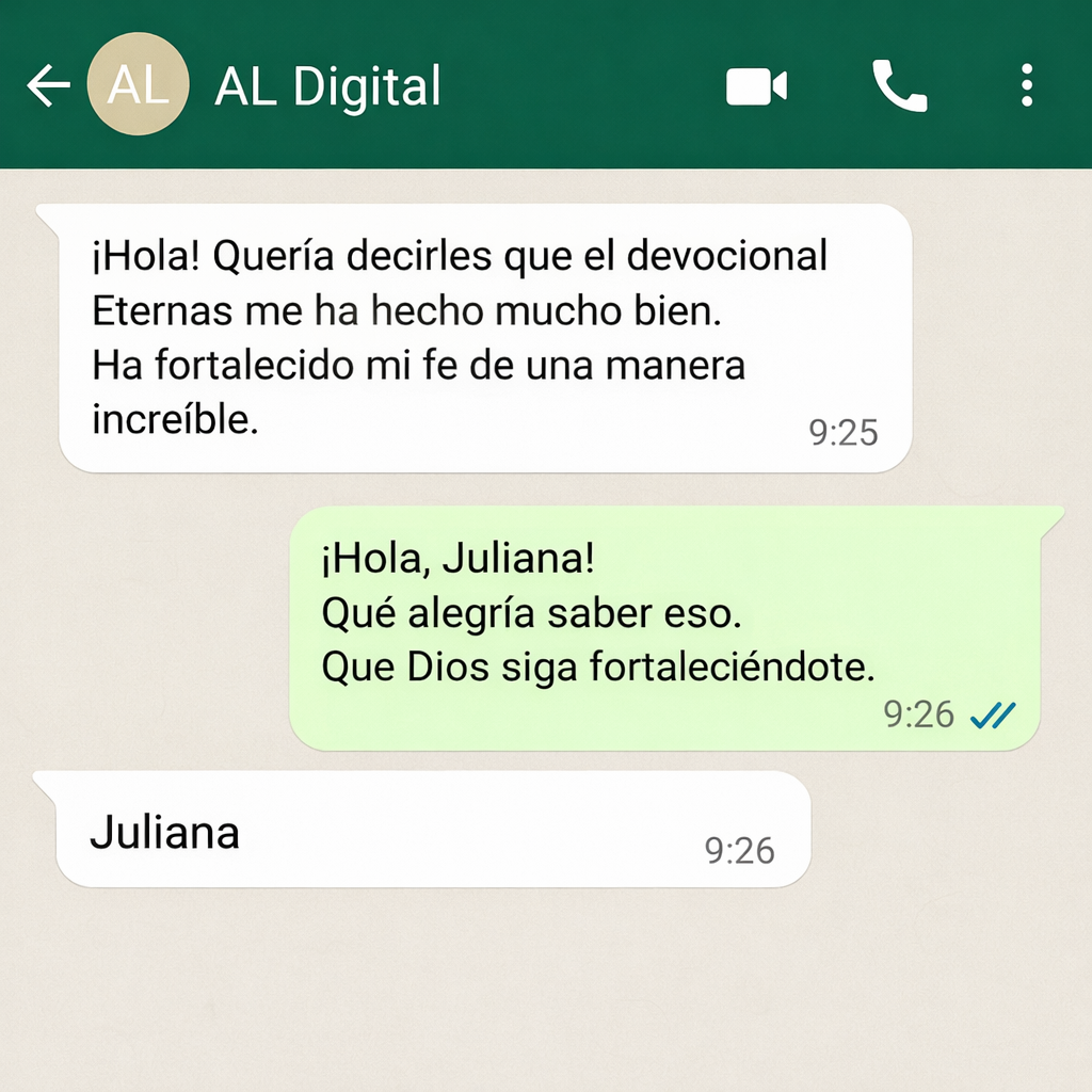 El Devocional Eternas es 100 % digital (formato PDF). Esto significa que recibes acceso inmediato, sin pagar envío y sin esperar al correo: puedes comenzar a leer hoy mismo.
